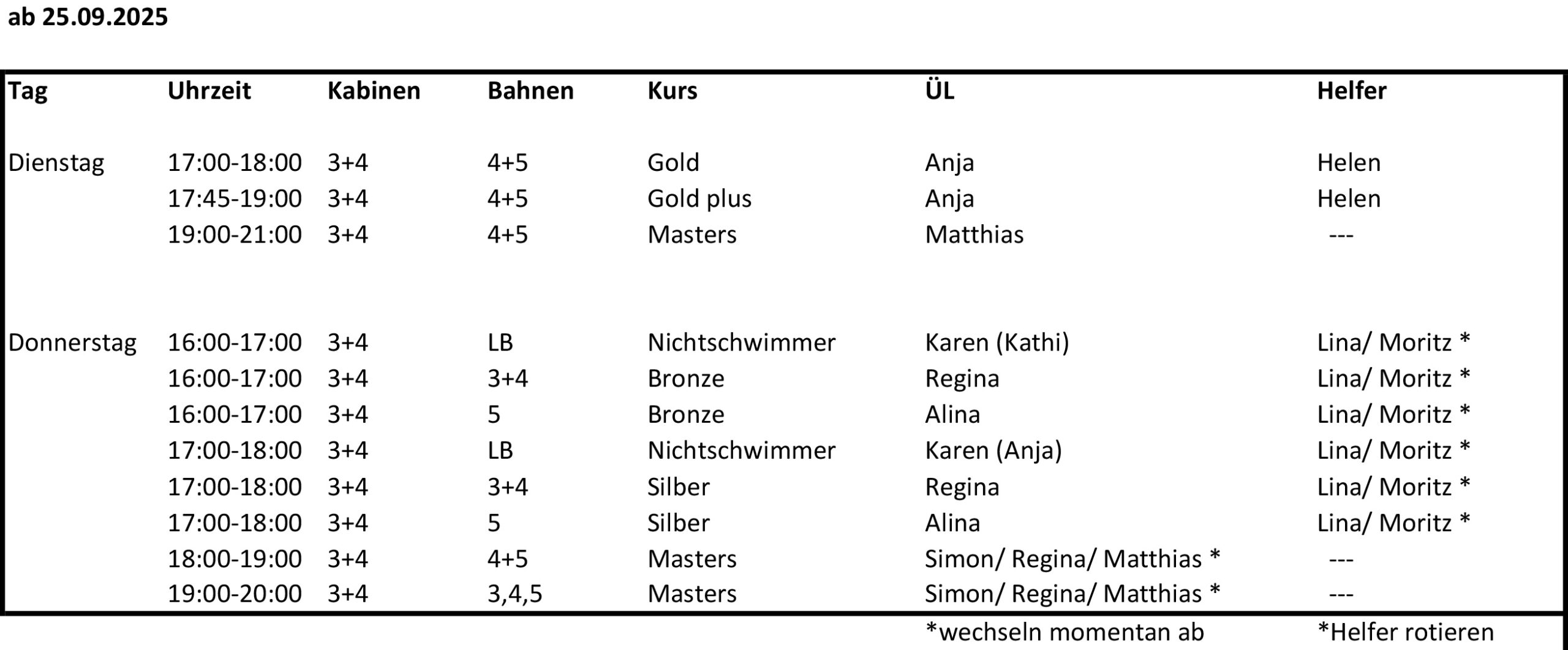 • Trainingszeiten